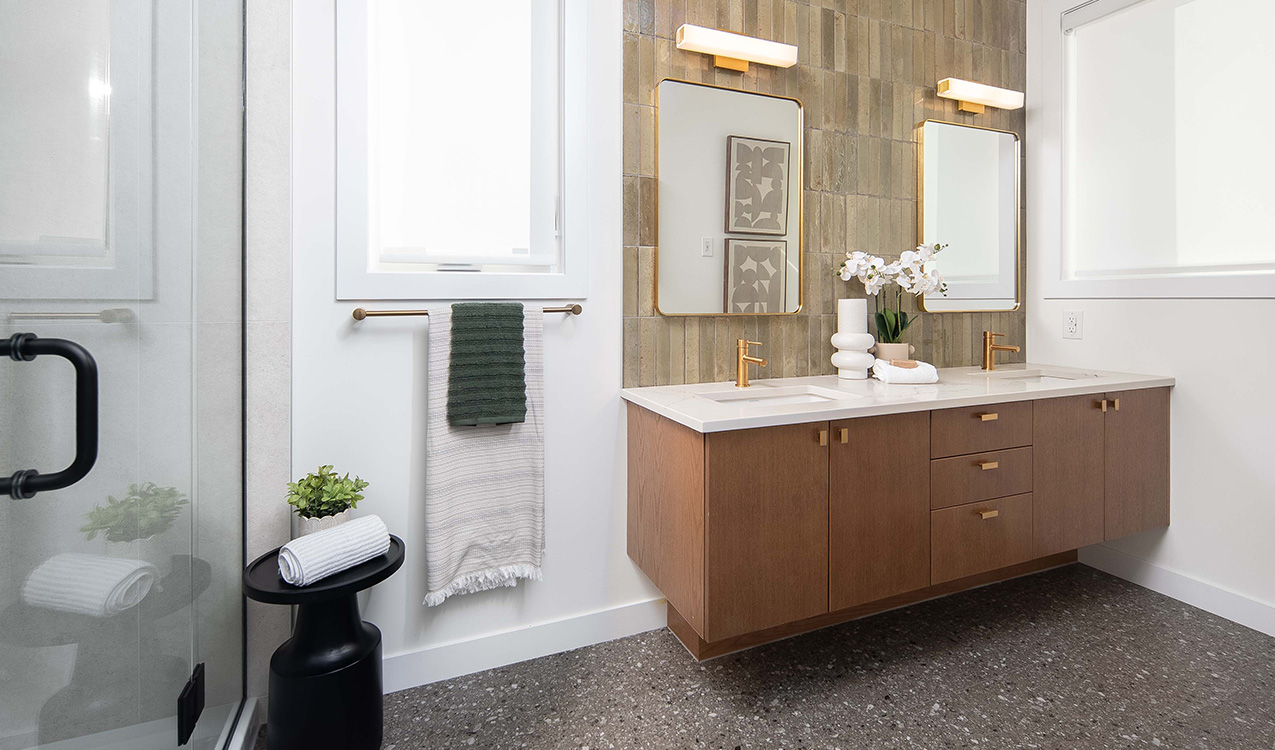 - Ensuite Includes Double Sinks and 5′ Tiled Shower